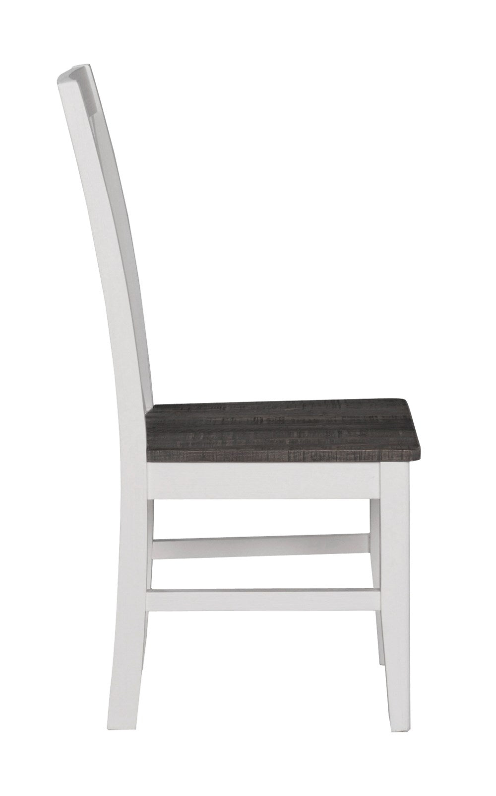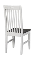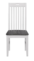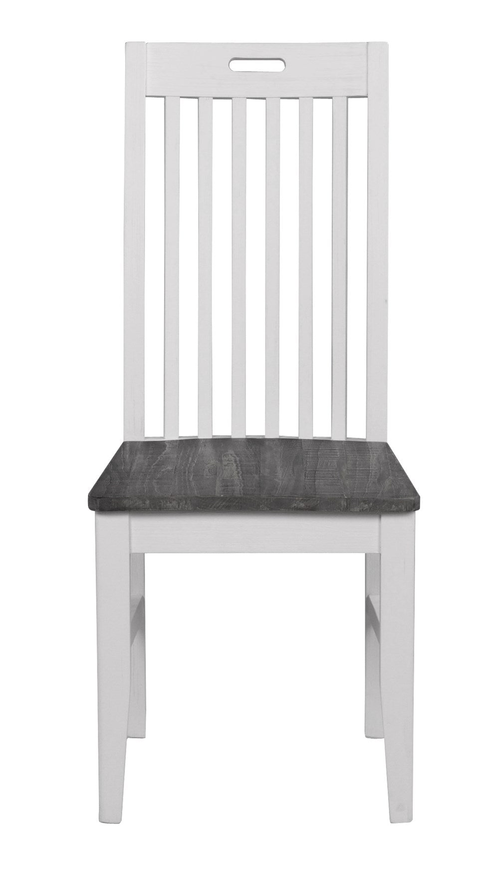 Elegant Nottingham chair with white frame and gray seat. High back with handle on top.