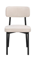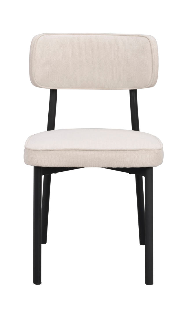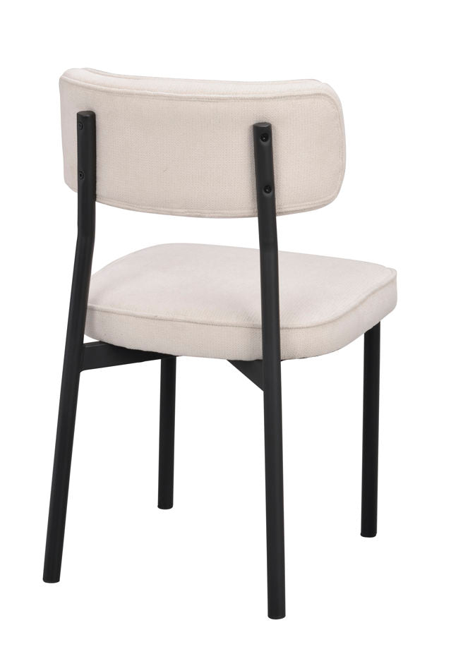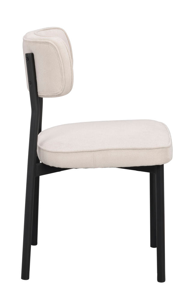 Paisley chair is FSC certified and has a durable light beige fabric that is made from recycled PET bottles (RPET). This means that the PET bottles did not end up in the sea, but instead were processed into a high-quality soft fabric - perfect for furniture. The rounded backrest makes the chair very comfortable. The trendy round legs in black lacquered metal give the chair a unique expression that suits most dining tables. Choosing a Paisley chair means a better environmental choice. Also available in grey-brown.