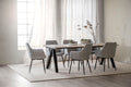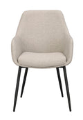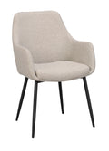 Reily armchair is a comfortable chair with a seat in a modern beige fabric. The chair has black metal legs and is available in several different fabrics. Please note that the colour of the fabric in some lights is perceived as light grey. Sold only in 2-pack.