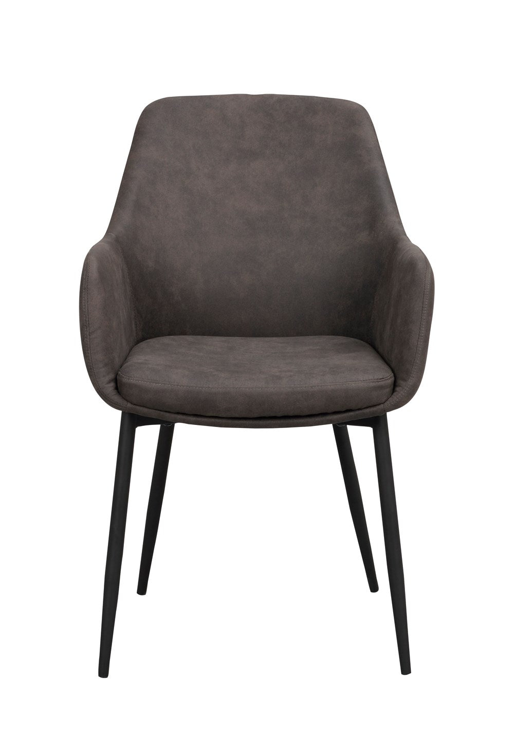 Reily is a comfortable chair with seat in dark gray microfiber. The chair has black metal legs.