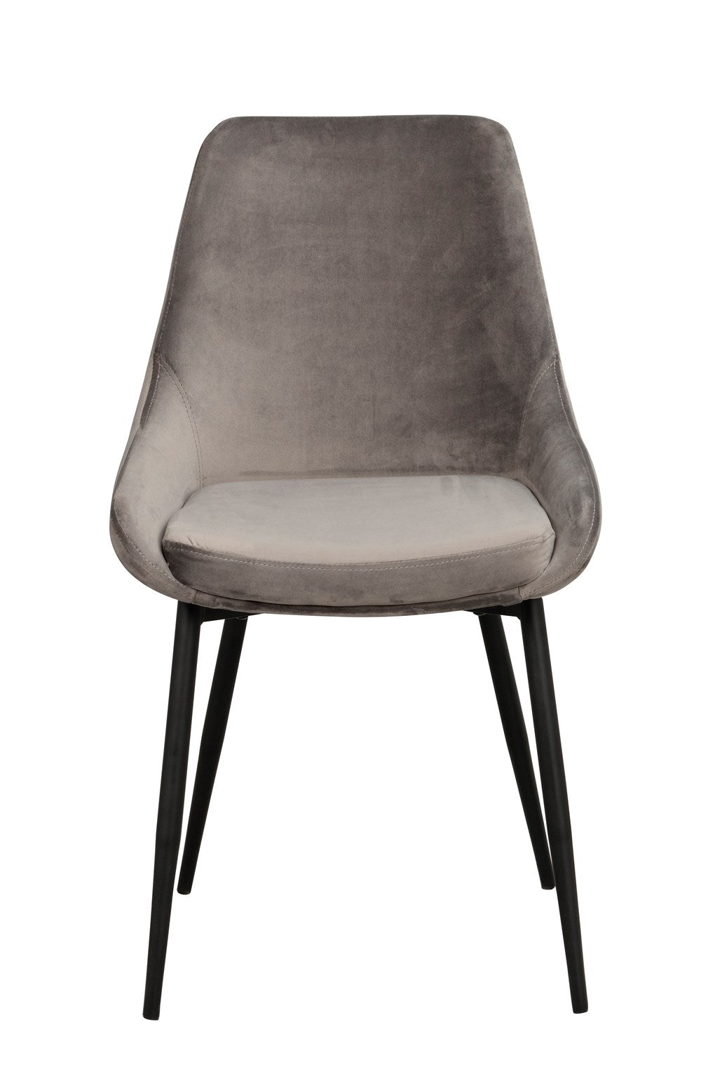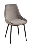Sierra chair in modern design with cushioned seat and back. Seat in gray velvet fabric with high wear level. Stylish legs in black powder coated metal. The chair is part of our Sierra chair range and is available in more colors.