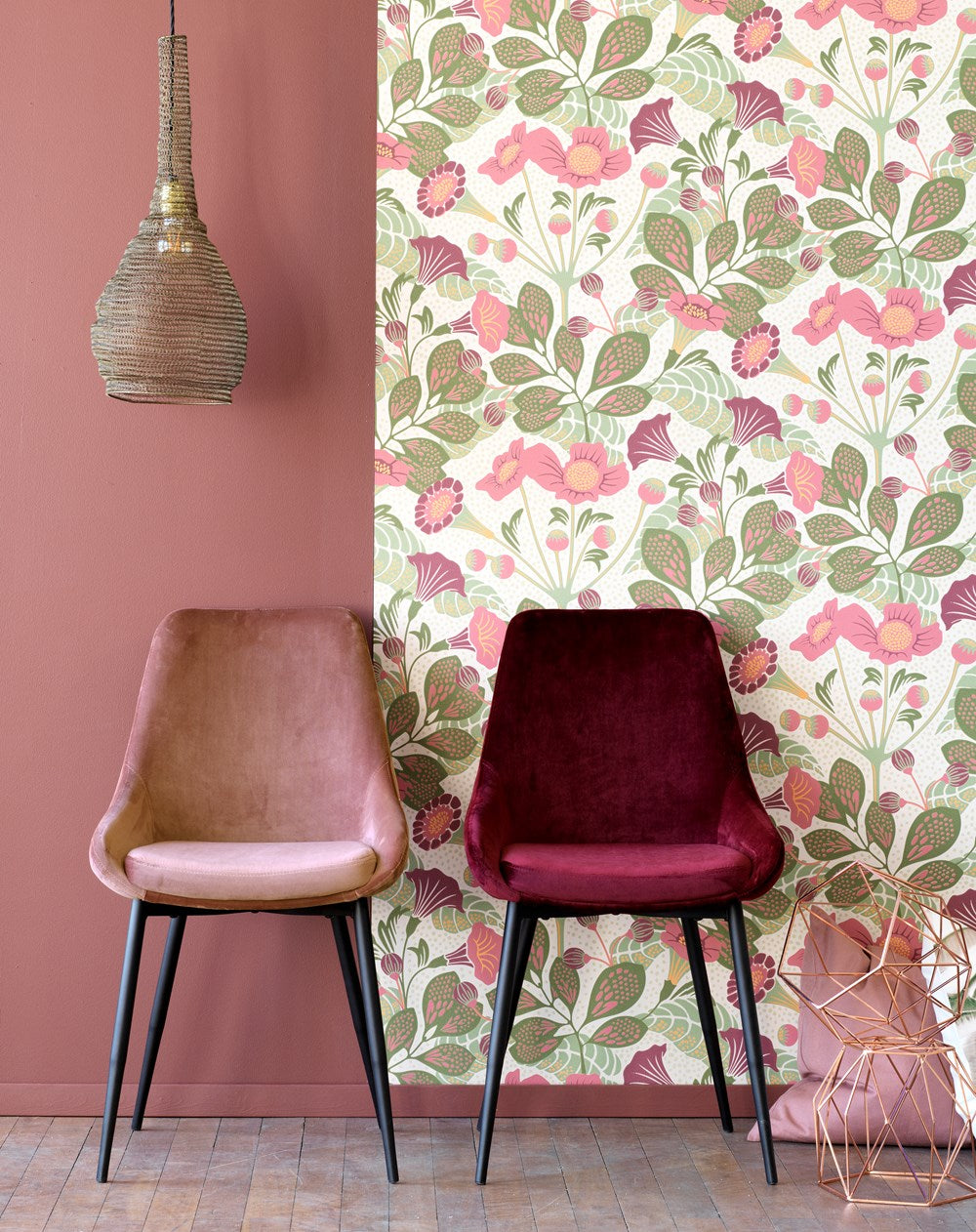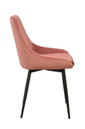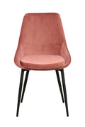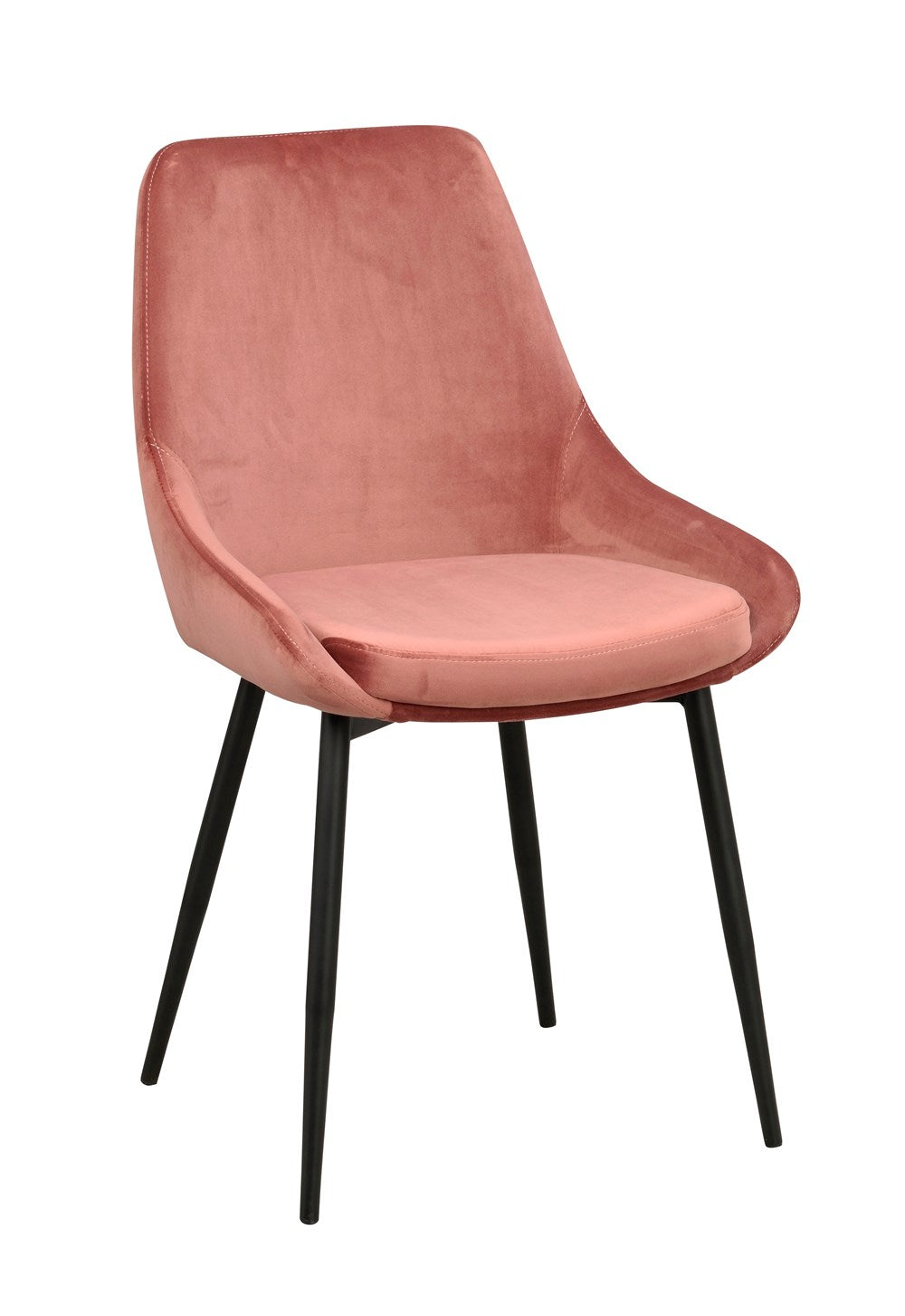 Sierra chair in modern design with cushioned seat and back. Seat in pink velvet fabric with high wear level. Stylish legs in black powder coated metal. The chair is part of our Sierra chair range and is available in more colors.