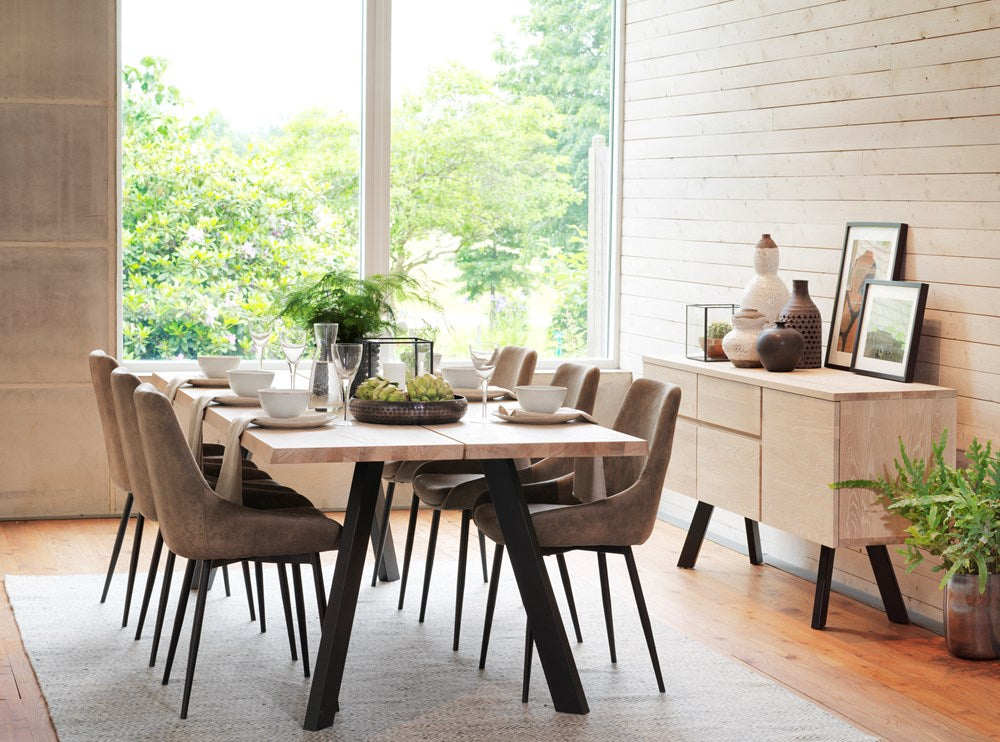 Modern and comfortable chair with cushioned seat and back. Seat in brown microfiber and stylish legs in black powder coated metal. The chair is part of our Sierra chair range.