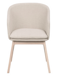 Windham armchair in beige fabric with solid whitewashed oak legs is both stylish and very comfortable. Scandinavian design, high quality and FSC certified wood make Windham a durable chair over time. The seat pad has removable cover. Available in two fabrics and four colours of solid lacquered wooden legs.