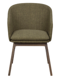 Windham armchair in green fabric with solid brown oak legs is both stylish and very comfortable. Scandinavian design, high quality and FSC certified wood make Windham a durable chair over time. The seat pad has removable cover. Available in two fabrics and four colours of solid lacquered wooden legs.