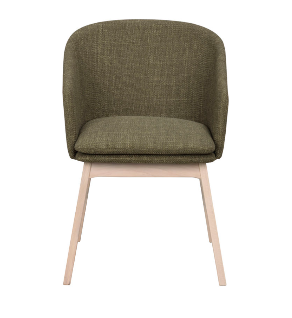 Windham armchair in green fabric with solid oak legs is both stylish and very comfortable. Scandinavian design, high quality and FSC certified wood make Windham a durable chair over time. The seat pad has removable cover. Available in two fabrics and four colours of solid lacquered wooden legs.