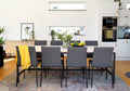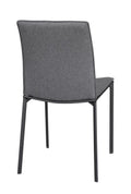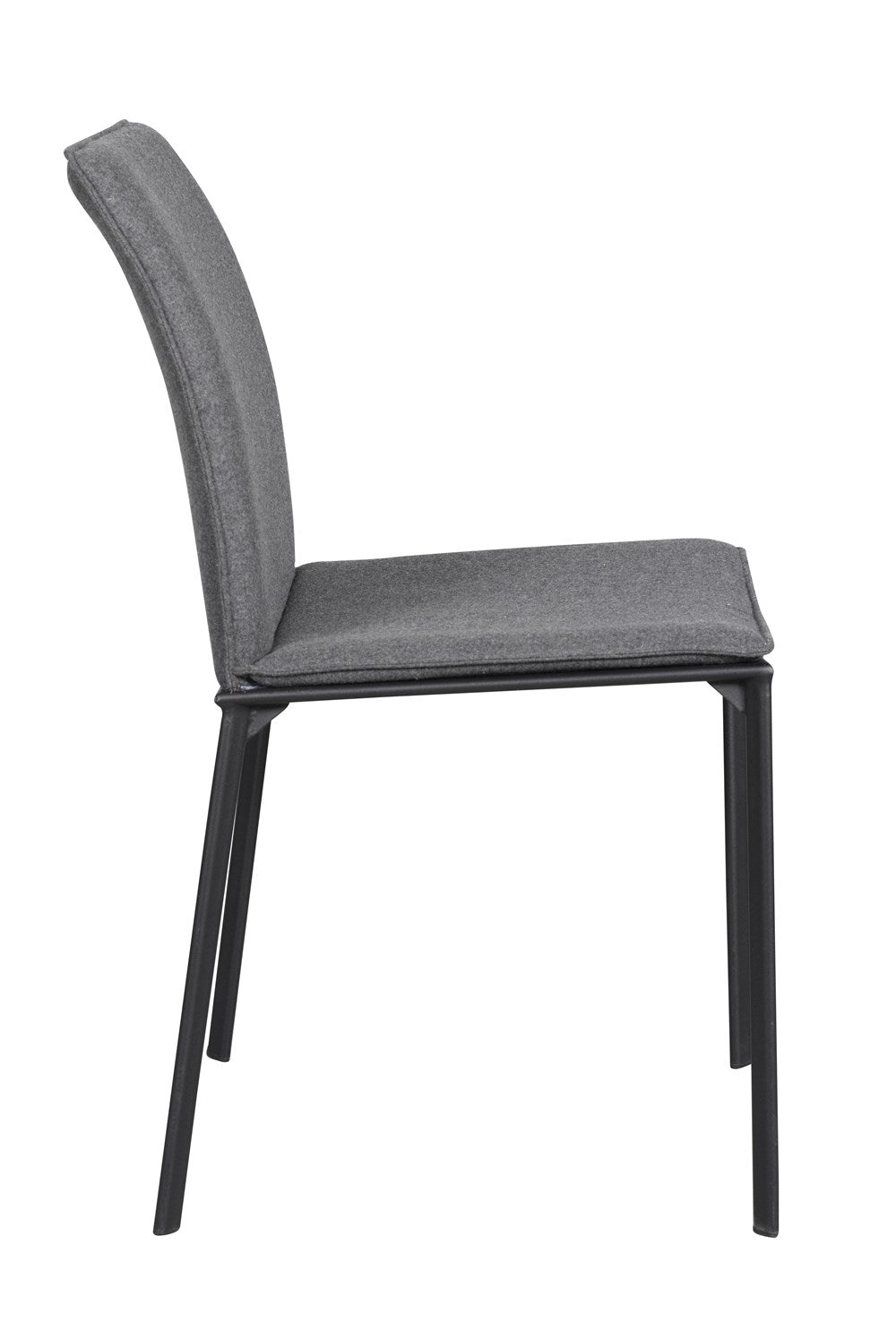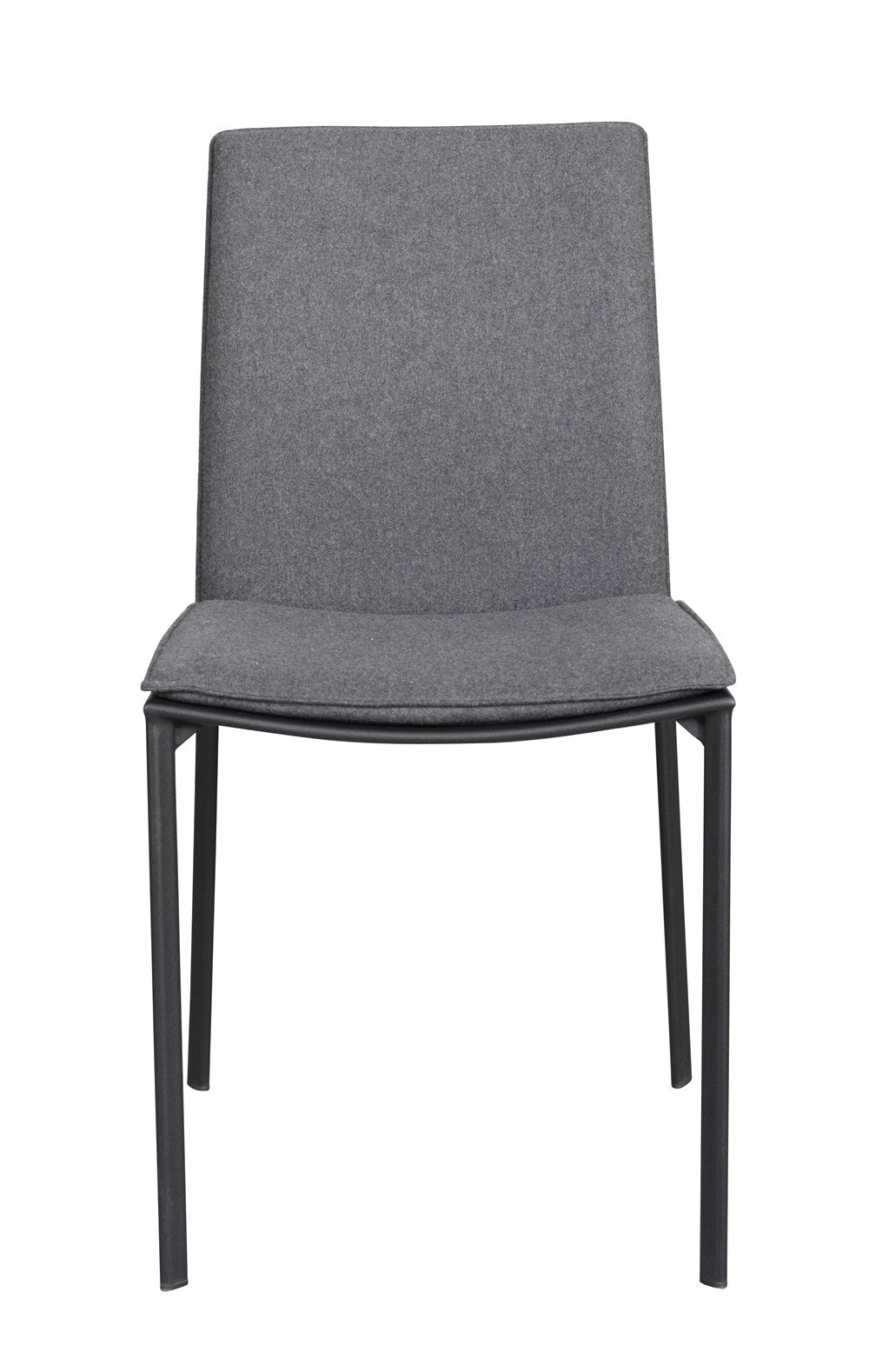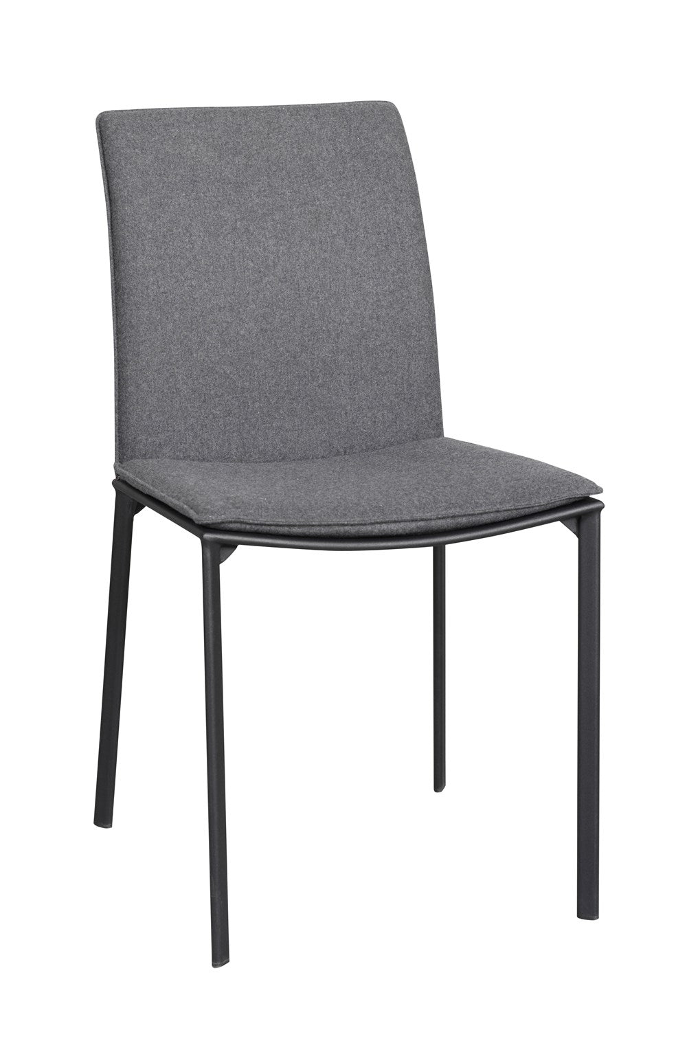 Simple and stylish chair with upholstered seat for comfortable comfort. Dark gray fabric in the seat and black slim legs in metal. The chair is part of our Wyoming series.