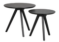 Yumi nest of tables with slightly exposed legs in a timeless Scandinavian design that lasts year after year. Table tops in black lacquered ash veneer. Large table; Ø 50 cm, height 45 cm, small table; Ø 40 cm, height 40 cm.