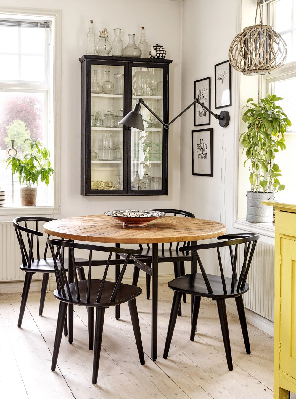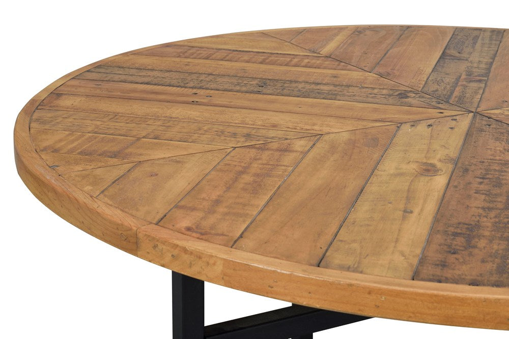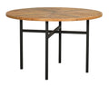 Zanzibar dining table in recycled solid pine. Round 120 cm dining table with powder coated legs in black metal. An exciting dining table with a rustic surface in a unique design. Part of our Zanzibar series and designed by us at Rowico.