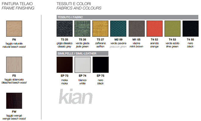 Chair with beechwood structure and shell upholstered in various fabrics.