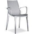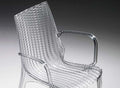 Chair in transparent or full-color polycarbonate with or without armrests, for indoor and outdoor use, stackable.