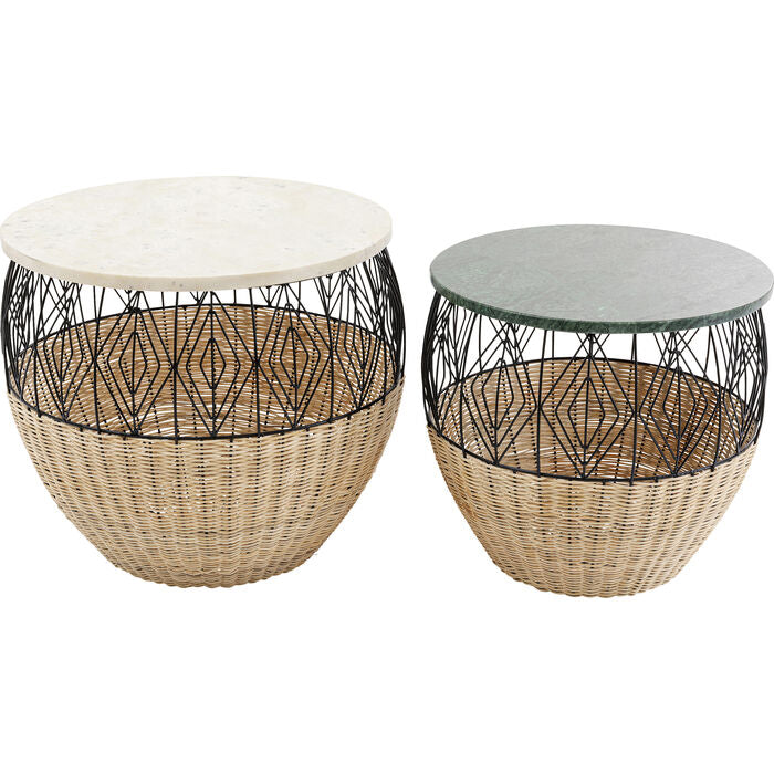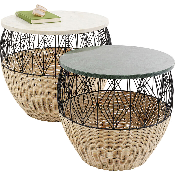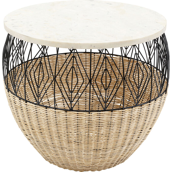 Material: Frame: Steel powder-coated, Rattan, Marble, 15 mm Thickness of panel, 3 kg Max. load-carrying capacity, Partly Manual Work