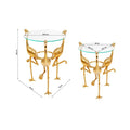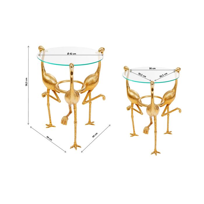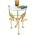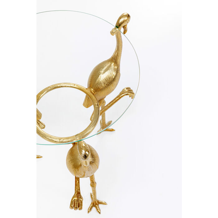 - Decorative, round side table with gold-coloured flamingos as the base and a round glass top
