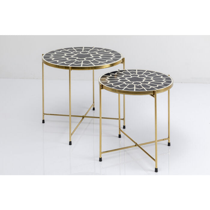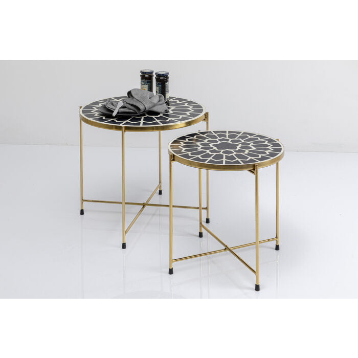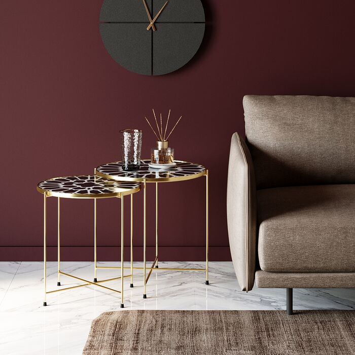 These modern side tables come in a set of 2: one table measures 50x50x50cm, the other 40x40x45cm. They work just as well in any room as a duo as they do as soloists. It is usually the small things that make a home a real home. Side tables play a big role in this, because they can be used in many ways, making your four walls cosier and offering space to beautifully display a pretty vase or a creative decoration. In the living room next to the armchair they make sure you always have everything at hand while reading, and are ideal as a nightstand for the bedroom.