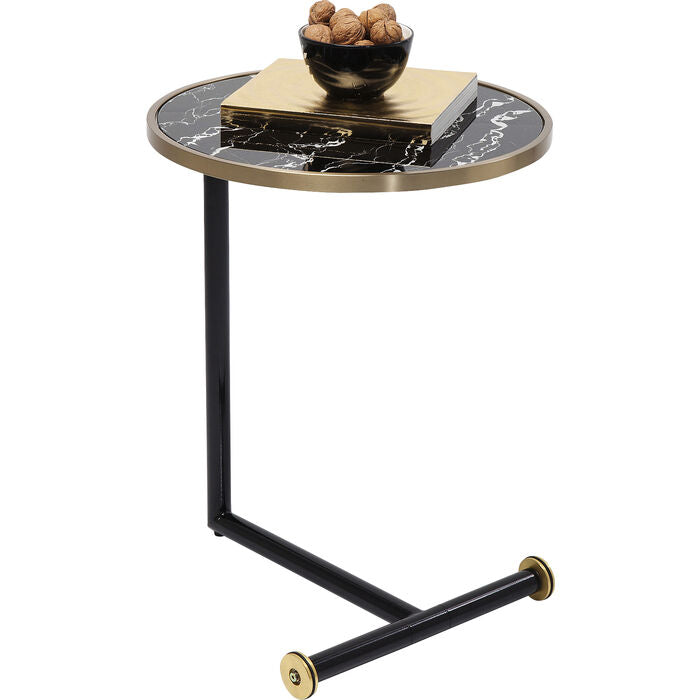 This side table impresses not only with its Italian chic, but also because it is so accommodating: its side-mounted table leg with flat base allows it to be pushed very close to the sofa or bed. Really practical!