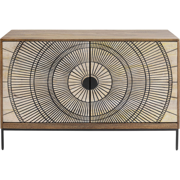 A typical KARE piece of furniture, because the fronts are striking with their pattern and the small sideboard tells of the traditional carpenter’s craft. This dresser is sure to bring personality into the living room.
