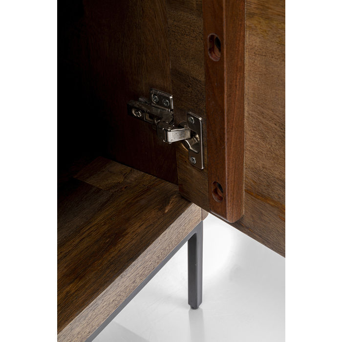 Material: Corpus: Mango Solid wood Lacquered, Front: Mango Solid wood Lacquered, Back panel: Medium density fibreboard (MDF) Lacquered, Foot/Base: Steel powder-coated, Shelf: Mango Solid wood Lacquered, Handle: Steel powder-coated, Shelf: Adjustable in height, 50 kg Max. load-carrying capacity, Hand-crafted, Delivery Knocked-down, Maintenance and Cleaning: Art. No. 25002 Furniture Cleaner