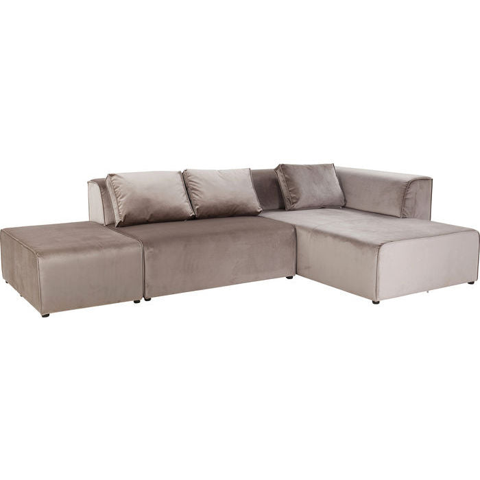 - Spacious corner sofa with mobile stool element, ottoman on the right. Three rectangular cushions in the same colour included