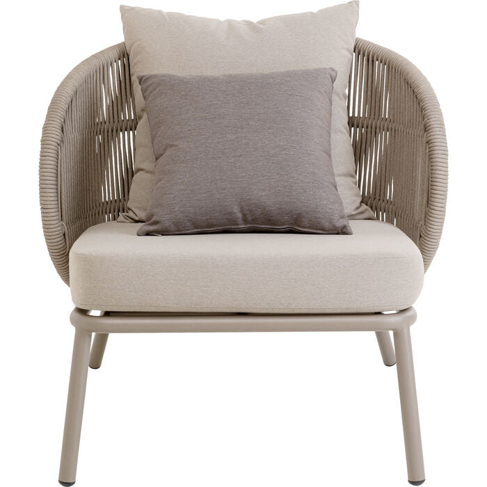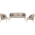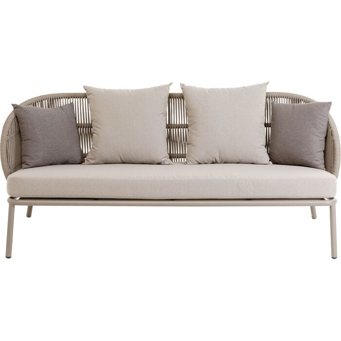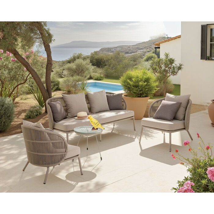 A modern and spacious outdoor sofa set designed for comfort and durability. Featuring a powder-coated steel frame and soft polyester upholstery, it offers a sturdy structure with a refined taupe finish. Perfect for patios, terraces, or garden lounges, with a matching table for everyday outdoor living.