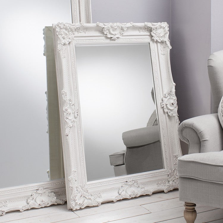 Fabulous statement mirror in a lightly aged, matt white finish. -