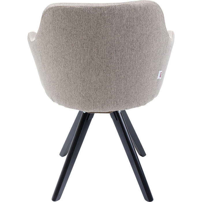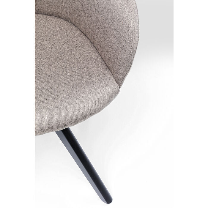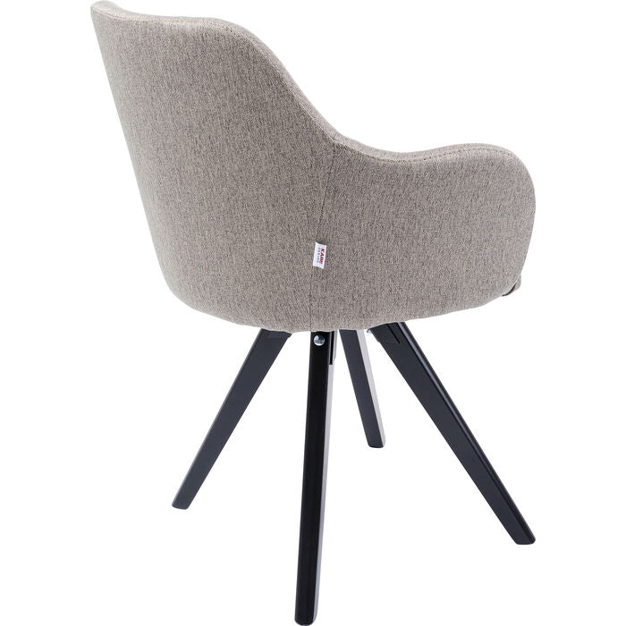 Classic design meets the modern look: with its flattering cover in taupe, this swivel chair with armrests is a real styling talent The black, slightly flared solid wooden legs and the ergonomic seat shell create an elegant silhouette. This upholstered chair cuts a pleasing figure in the dining room, living room or office - in fact, just about anywhere. And it’s also ultra comfortable.