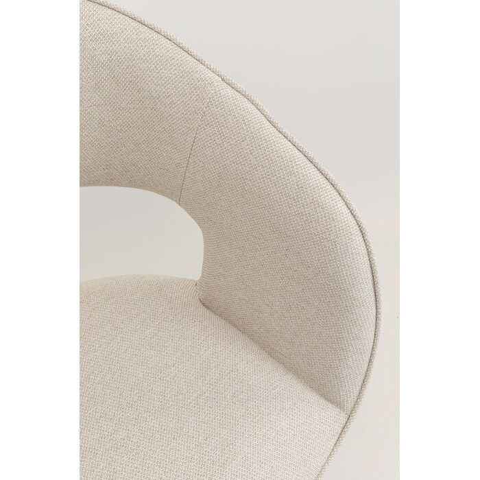 Modern design with a feel-good factor: this beautifully shaped swivel chair brings lightness and style to any room. The gently curved silhouette meets the exciting contrast of light beige and deep black frame - a look that combines timeless elegance with urban flair. Thanks to the clever swivel function, the chair remains flexible at all times, whether for creative work, dinner or a relaxed chat. The soft upholstery ensures comfortable seating with a sense of style. It looks particularly elegant when mixed with glass, marble or minimalist wood tones. A versatile statement piece for modern interiors with character.