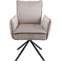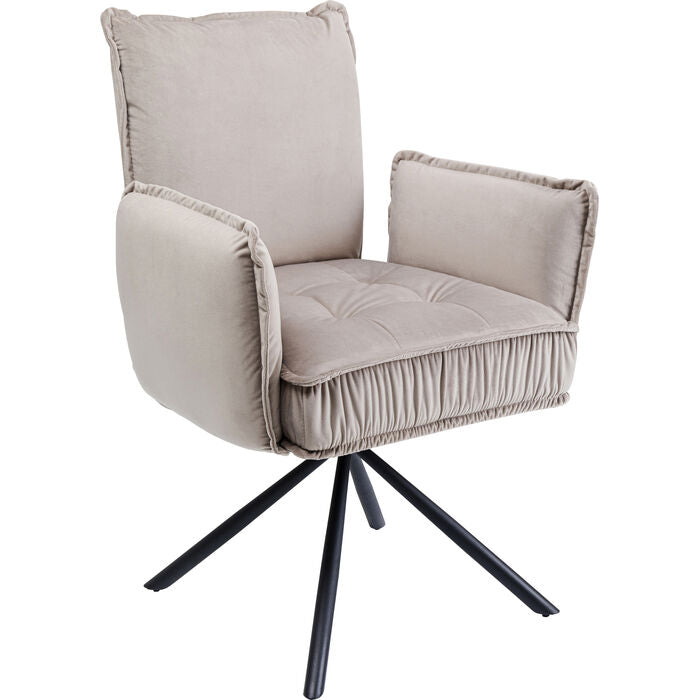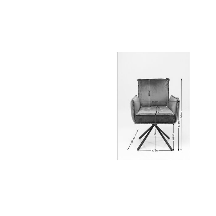 A designer chair that catches everyone s eye. This is due to its design idea: the seat is modelled on a floor cushion with button stitching, the back cushion is made in the shape of a sofa cushion with piped seams. Together, they make a comfortable dining chair whose swivel function makes it easy to sit down and get up. This original chair is not only suitable for the dining room. As an upholstered chair, it is also a good choice for long sessions at the desk or meeting table. Seat height 49cm and loadable up to 120 kg.