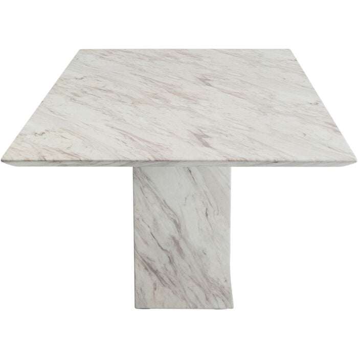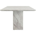 With its cuboid table base and marbled all-over look, this dining room table magnetically attracts everyone s attention. A piece of designer furniture that suits all living styles and gives rooms a classy upgrade. The look is as elegant as the care is simple. The minimalist design goes well with various dining table chairs. Velvet chairs add glamor, while simple, clean-lined chairs underline the modern living style