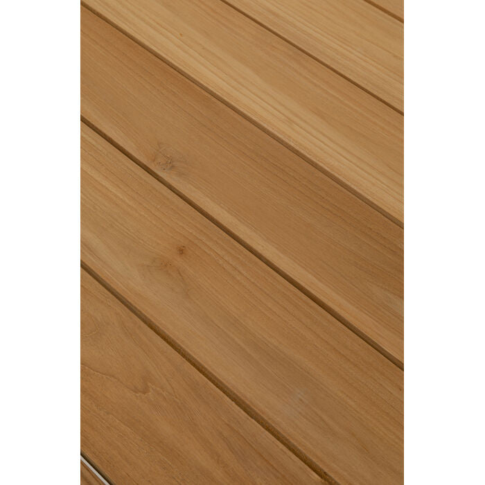 This elegant outdoor dining table made of teak brings a breath of fresh air to any outdoor area! The robust, oiled surface makes it the ideal companion for patios, balconies and gardens - whatever the weather. With its timeless design, the table can be wonderfully combined with a wide variety of chairs and accessories, whether in a modern minimalist or rustic country style. Whether for cozy dinners, exuberant celebrations or relaxed hours with friends and family - it always creates a warm, inviting atmosphere and ensures unforgettable moments outdoors