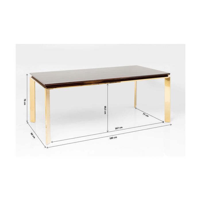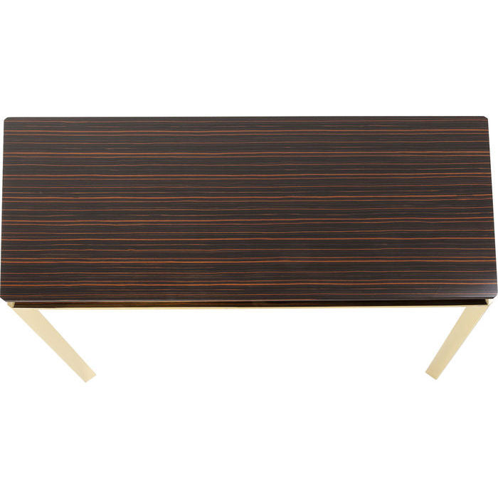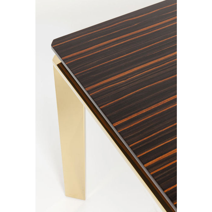 Who needs golden cutlery when the table itself stands on glittering legs?! Boston doesn t just look good as a dining table, but also as a desk. Characteristic of the Boston series are its graphic lines, brass-coloured details and the charming grain of the eneer in ebony-look. Other versions available.
