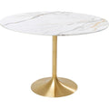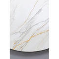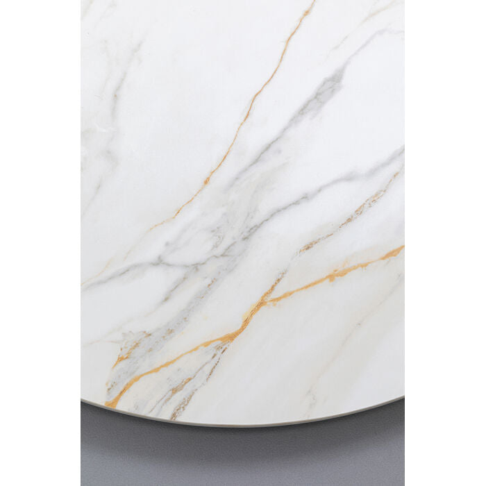 The Invitation Set Ceramic White Brass table brings a bright, elegant presence to modern dining spaces. Featuring a glazed white stoneware tabletop paired with a brushed stainless-steel base, it combines clean sophistication with refined material contrast.