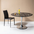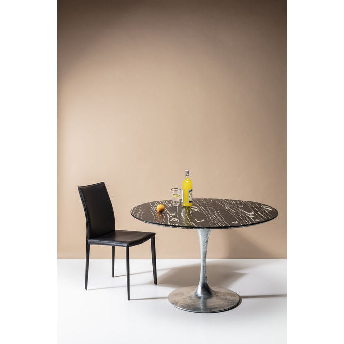 - A round modern table in a classic design tradition with a galvanised metal base and a fine top with veneer in the authentic ebony look.