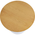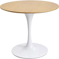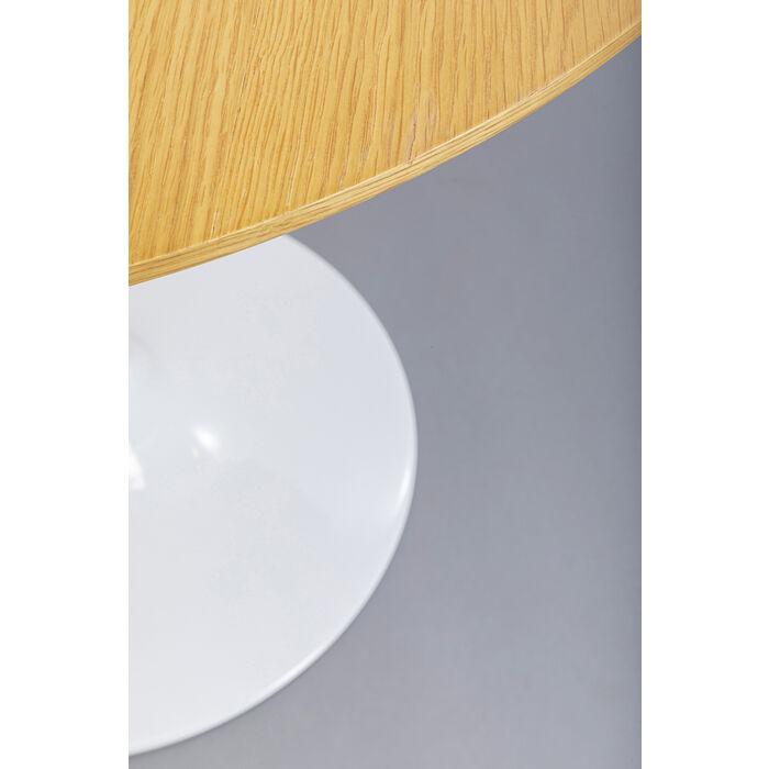 - A round modern table in the classic design tradition with a glossy white base and a fine top with real wood veneer in oak.