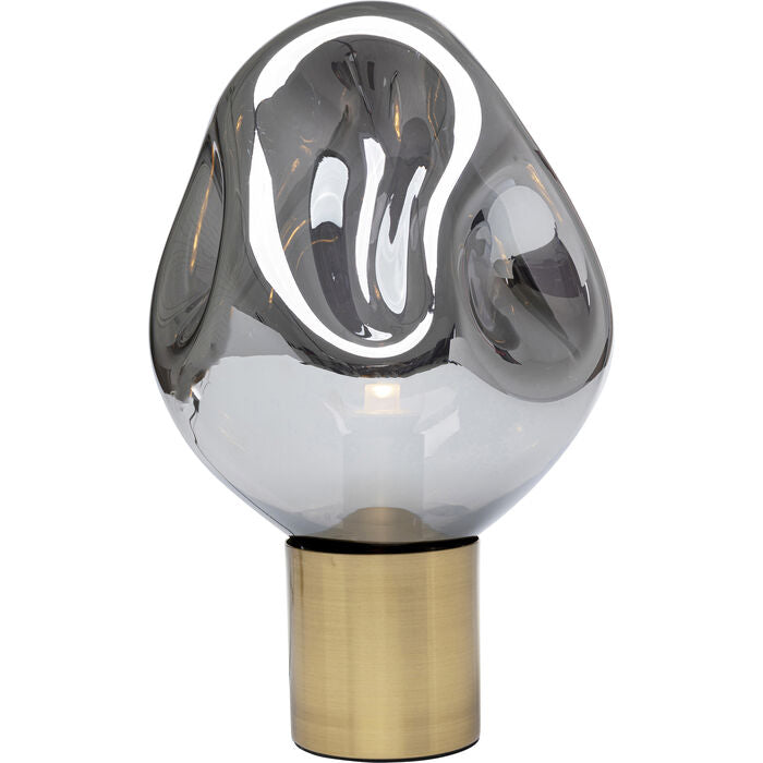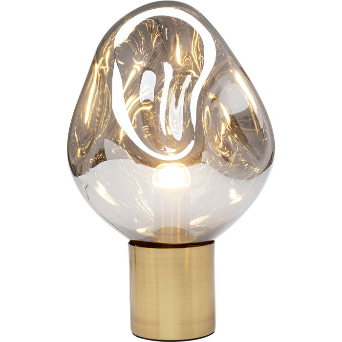 Even switched off this design object attracts all eyes: thanks to the excitingly irregular shape in combination with the classy colour mix of brass and silver, this table lamp is a real highlight in any modernly furnished living room. Interior design professionals know that a room needs three to five light sources and this modern table lamp spreads particularly atmospheric indirect light. The glass shade of the spherical lamp reflects the light source inside and mirrors the surroundings in a multi-faceted way, providing atmospheric light in the bedroom, too, if you use the designer table lamp on your bedside table. 230 V, 50/60 Hz, bulb fitting E27, number of illuminant 1, max. 40 watt, without illuminant