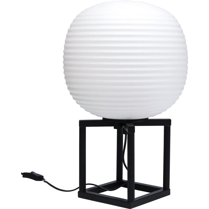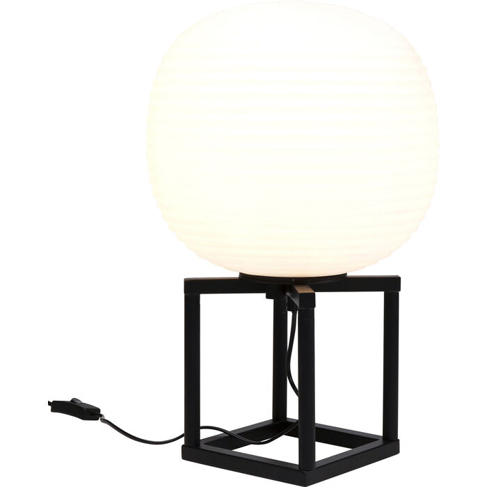 - Table lamp in pure, geometric design with a white glass ball and black steel frame