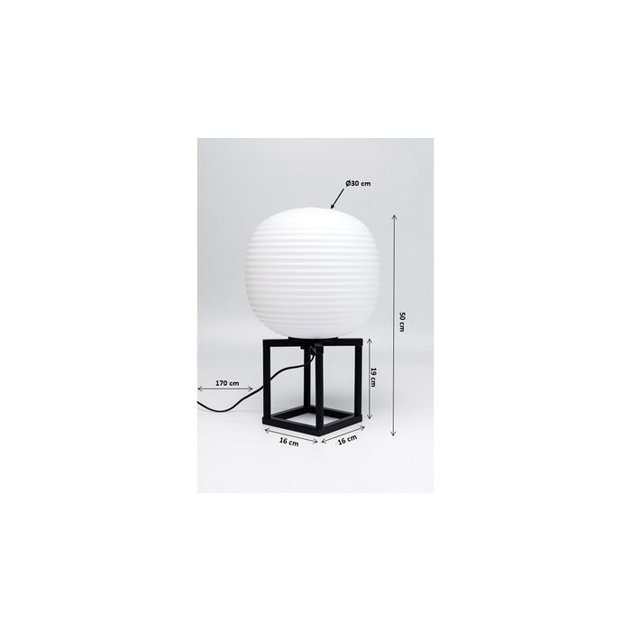 This designer piece thrives on contrast. Black meets white, while the round ball of the lamp is placed on the square frame in the shape of a cube. The white glass ball with its regular surface structure is inspired by traditional Chinese lantern lamps. And it is precisely this design quote that makes this lamp a favourite object in the home! 230 V, 50/60 Hz, bulb fitting E27, number of illuminant 1, max. 40 watt, without illuminant