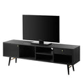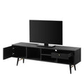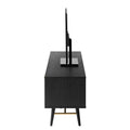 Black oak melamine, powder-coated black metal legs, copper metal accents.