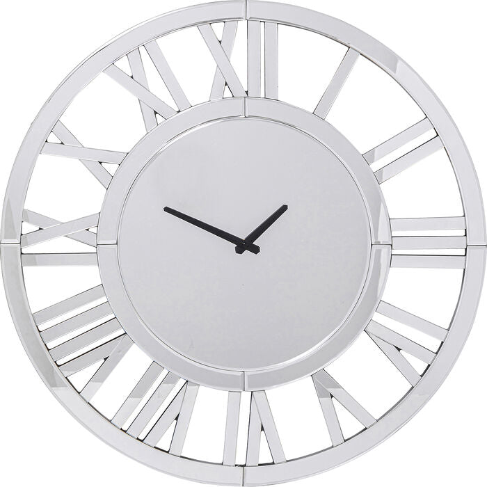 - In the style of metropolitan glamour: a large, round clock for the wall, completely reflecting with Roman numerals