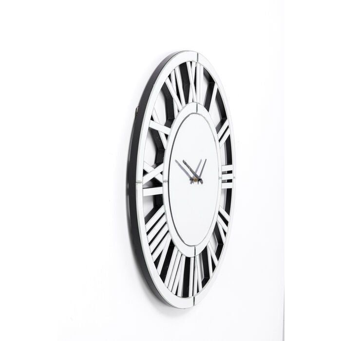 This decorative, mirrored clock is a clear rejection of bare walls. Its design adapts to any furnishing style, adding cool glamour and playing with light and colours.