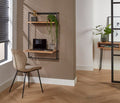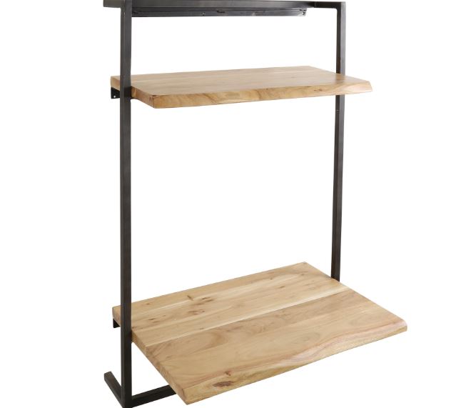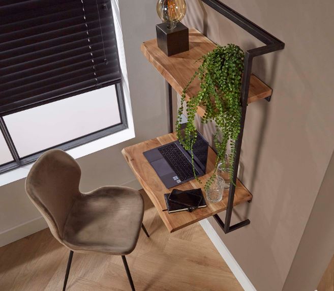 This 'air solid' desk is made of metal with acacia wood. This combination gives this desk a contemporary look. Because this desk can be hung, it can also be used in smaller spaces. This desk is mounted on the wall by means of a strip with four screw holes, allowing you to hang it up. In addition, there are several screw holes under the wooden shelves.