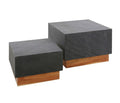 This coffee table set of 2 'blox slate' is finished in slate with an acacia wood base. The slate is applied with a thin layer, giving it its beautiful look, but also keeping a comfortable weight. A timeless set suitable for any interior!