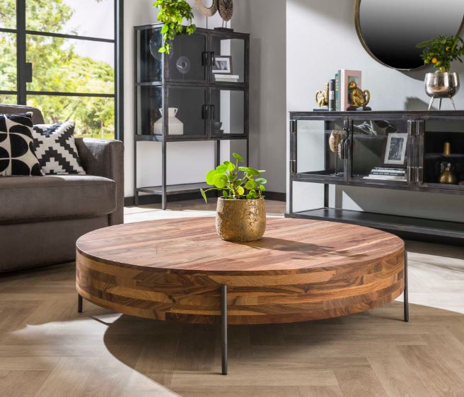 This trendy 'Daytona' coffee table is finished in Saja natural walnut with four legs. The legs are finished in metal with a dark grey coating. A real eye-catcher! This table is part of the 'Daytona' series.