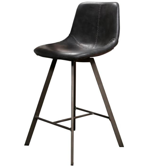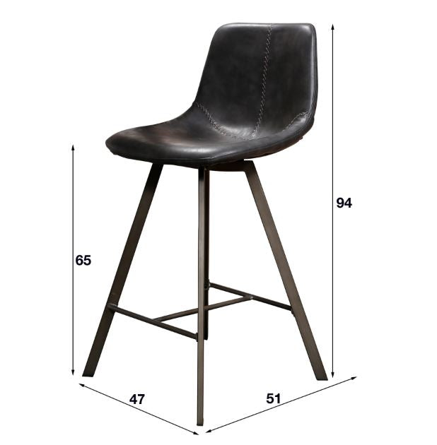 A sleek industrial stool with a supportive saddle seat, diamond zig-zag stitching and slim black metal frame. Pick unique cowhide leather or easy-care PU (black or taupe).